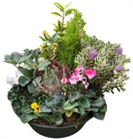 Photo non contractuelle | Jardin de Plantes Fleuries - Taille L Jardin de plantes de saison en terre : 7 à 8 plantes vertes et fleuries en Corbeille Osier -
