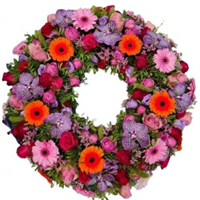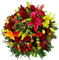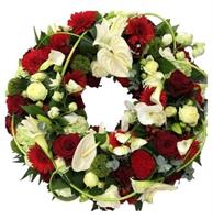 Photo non contractuelle | Couronne - Taille S Elégante couronne de fleurs de saison avec feuillage pour un dernier hommage -