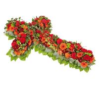 Photo non contractuelle | Croix grand modèle Majestueuse croix à base de fleurs de saison sur base de feuillage -
